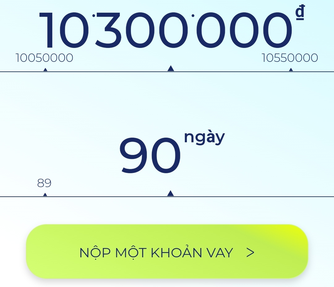 - Bước 2. Lựa chọn số tiền và thời gian bạn muốn vay ➜ sau đó bấm nút Nộp một khoản vay