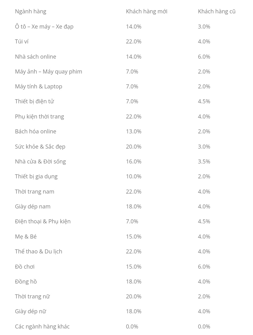 | Bảng hoa hồng tiếp thị liên kết Shopee dành cho KOC |