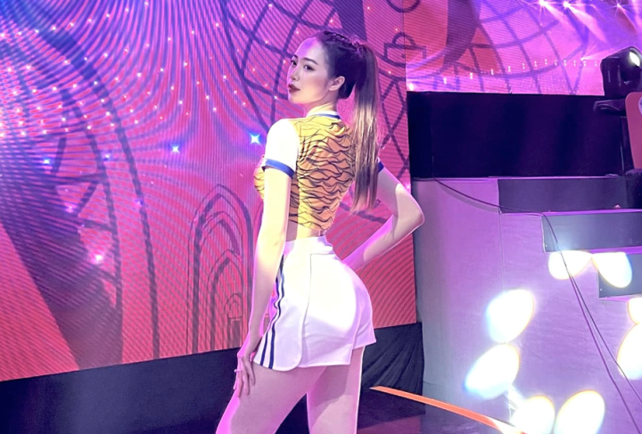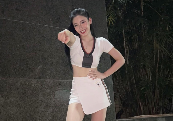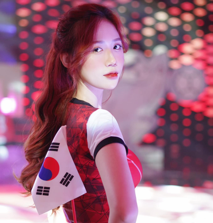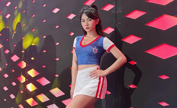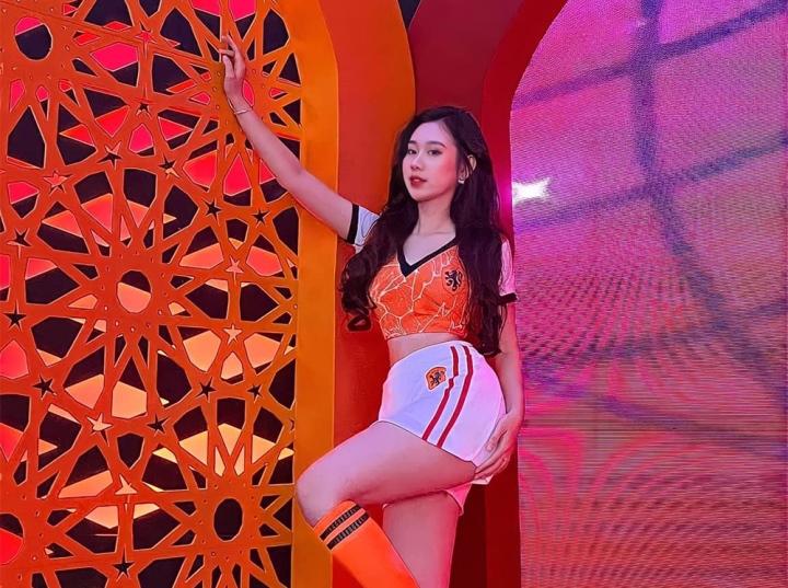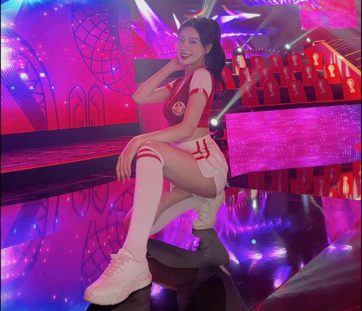 | Nguyễn Tường Vy trong trang phục Nóng cùng World Cup |