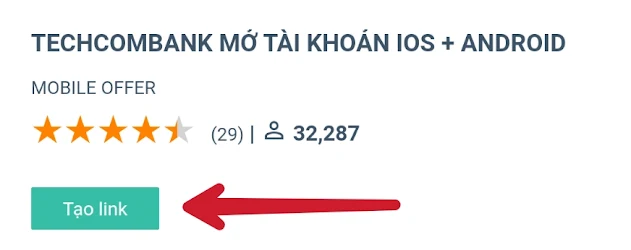 | Tạo link affiliate cho ngân hàng Techcombank |
